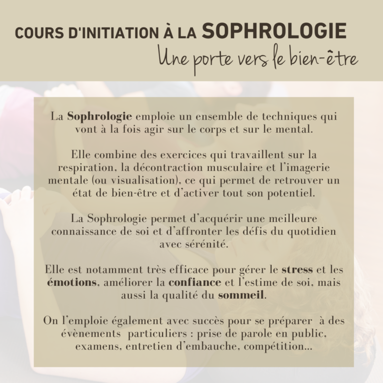J’ai convenu avec La Salle à Thoiry, d’utiliser le Studio pour des séances collectives de Sophrologie et de Relaxation Dynamique.